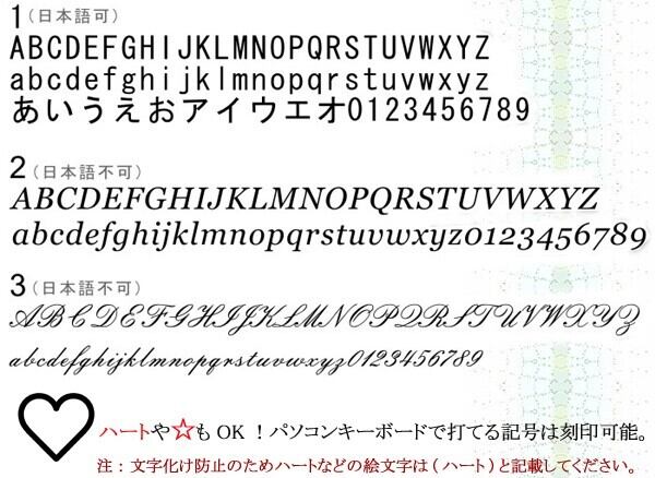 ※刻印をご希望の場合は、文字と書体番号をお知らせ下さい。
