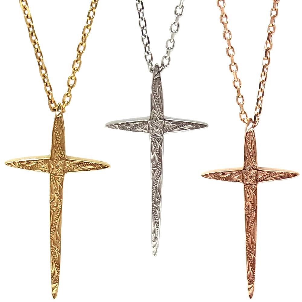 ハワイアンジュエリークロスネックレスは、金属アレルギーの方にも安心してお使いいただけるサージカルステンレス316Lを使用しています。繊細なスクロールと美しいデザインが、おしゃれなアクセサリーとしてだけでなく、身につける喜びをもたらしてくれます。